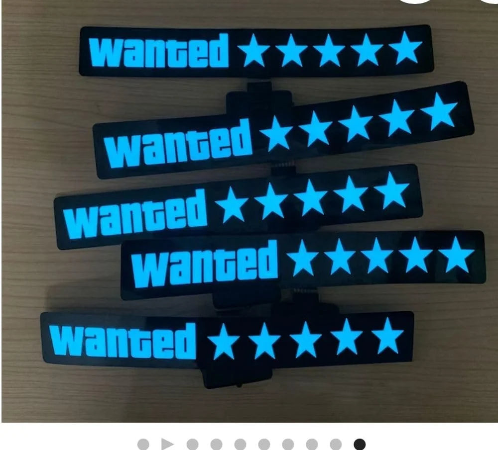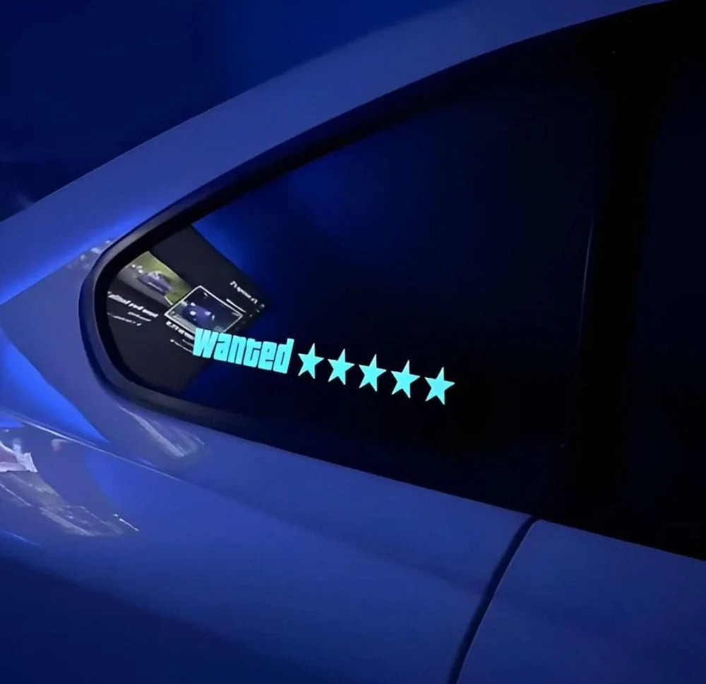 Wanted 5-Star LED Car Decal | USB Rechargeable Window Sticker with 5 Modes